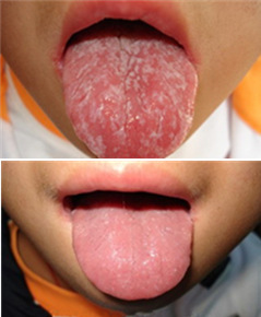 地图舌又名游走性舌炎.是多见于儿童和青少年的口腔舌粘膜疾病,在一般人群中的患病宰为l~2%。它是一种浅层的慢性剥脱性舌炎,丝状乳头区域性剥脱形成红斑区.边缘为1~3m 宽的白色或黄白色弧形边界...[详情]