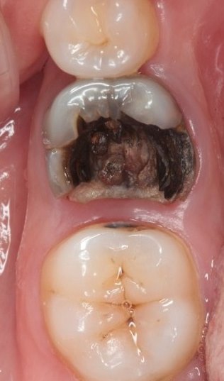 医生检查发现溃疡处对应的牙床上有一颗蛀牙,她回忆嘴里的这颗蛀牙有好多年了,开始时蛀了一个洞,慢慢牙冠蛀没了,只留下牙根和露在外面的一点点残牙,由于不疼不痒,她也就没有拔掉。而这颗坏牙正是导致口腔癌的罪魁祸首。由于蛀残牙十分锋利,吃东西时,很容易戳到口腔黏膜,在这种长期的刺激下,就易发生癌变。