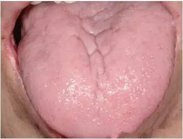 图1 缺铁性贫血患者的舌黏膜表现